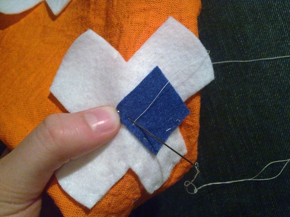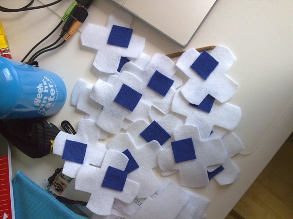 The theme of the HAR2009 Lounge was "retro gaming". One person of the designteam came up with the idea of putting together pacman ghoststools with Ikea square shaped seats. I've bought these seats, painted the covers in pacman colours, attached the eyes, sewn the black line on them and put them together.