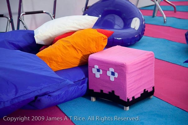 There were a lot of beanbags, even more pillows and lots of other soft stuff to sit on. We've made pacman-ghosts-stools to sit on and as an extra decoration. There were also side tables to put drinks on.
